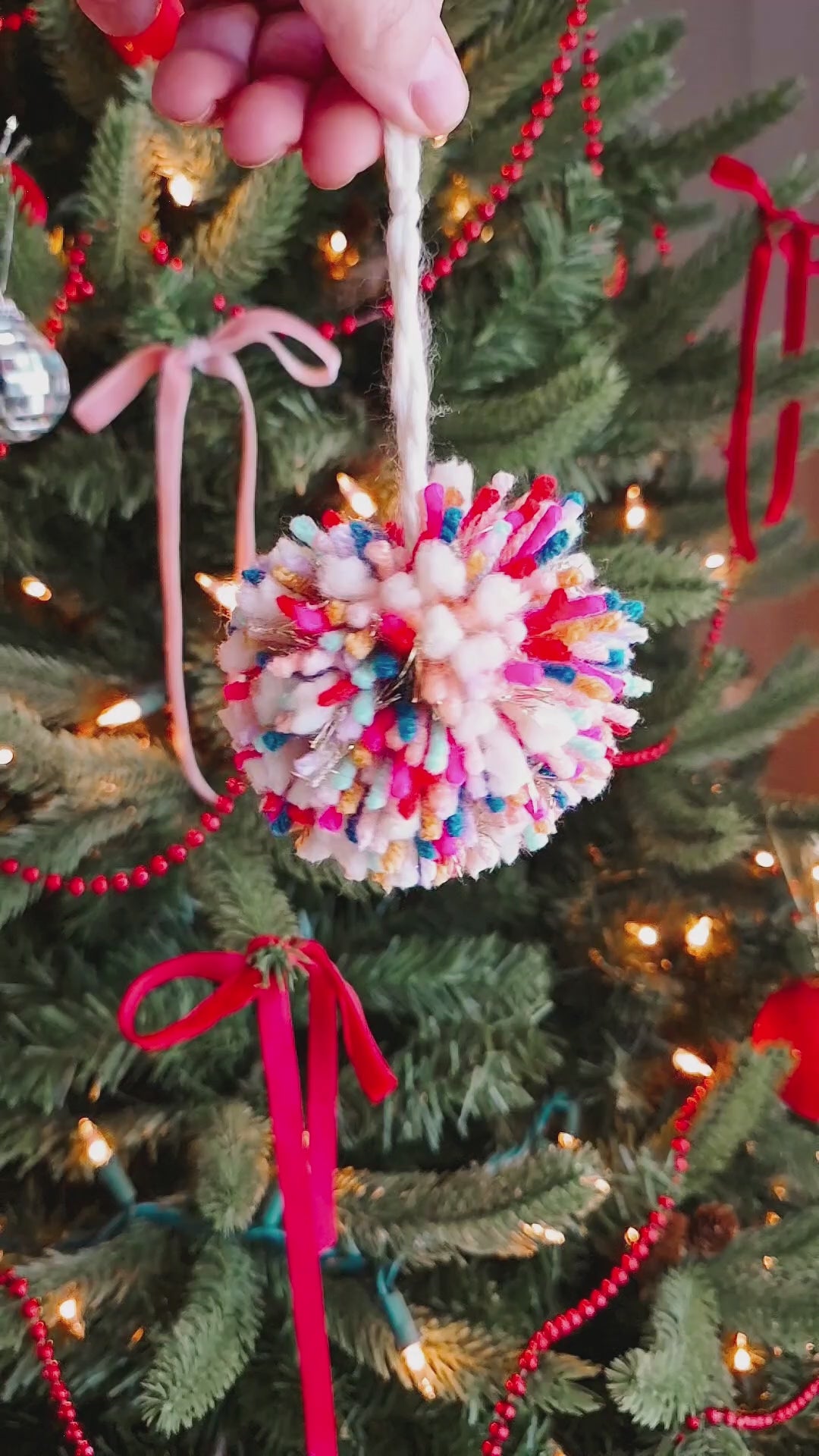 Add a pop of color and cozy charm to your tree this year with these handmade pompom ornaments! Each one is crafted with soft, fluffy yarn in joyful, festive colors that bring warmth and whimsy to your holiday décor.