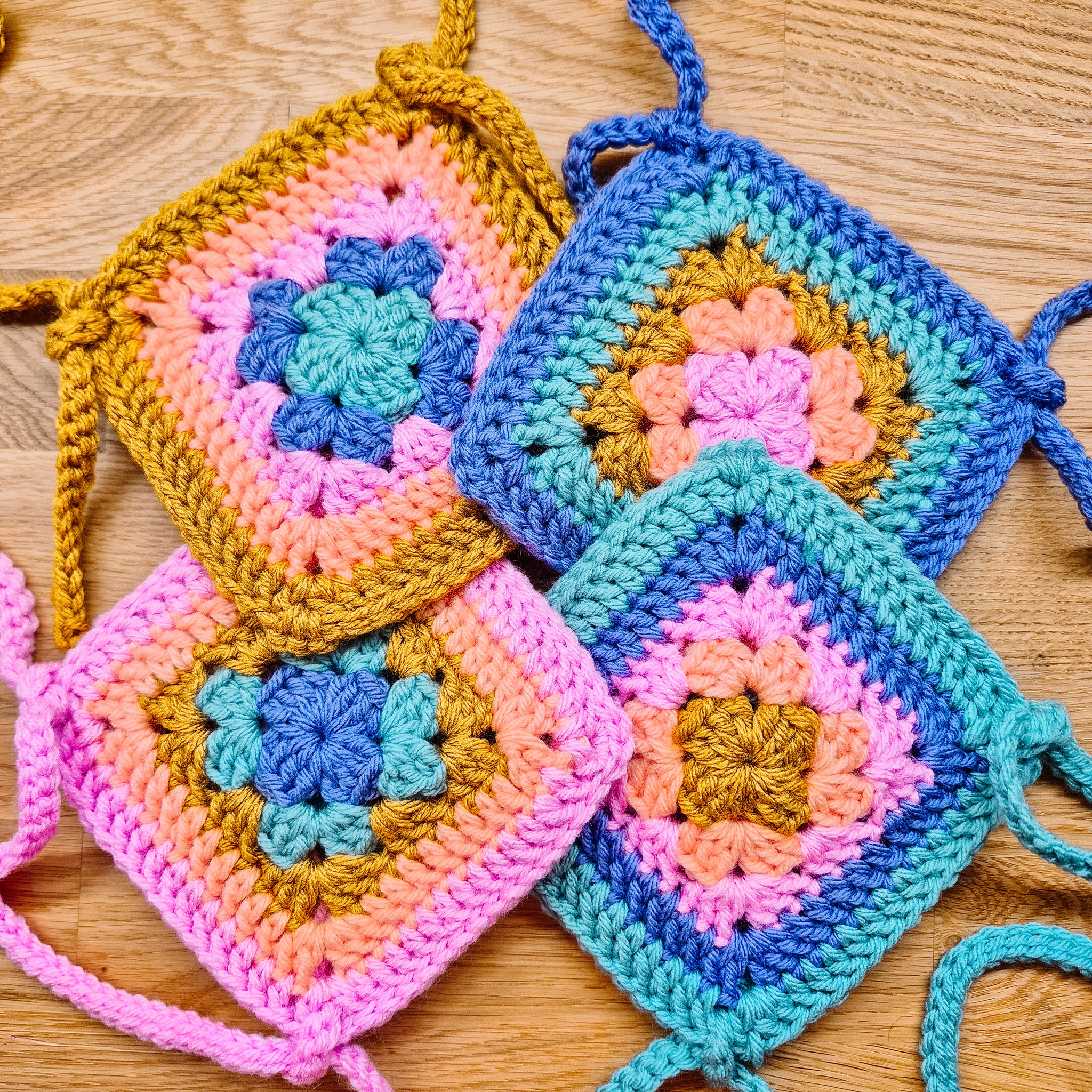Made in vibrant, joyful colours... this handmade granny square purse is perfect for trinkets, special finds, and everyday adventures. Just the right size for little hands and all their magical discoveries.
